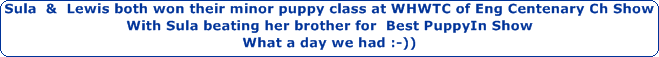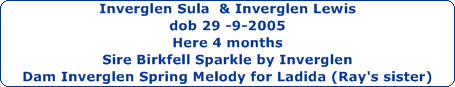 Inverglen Sasha *Sasha* and Inverglen Lowe N Behold *Monty* Two pups sired by Birkfell Sparkle by Inverglen out of our Ch Inverglen Sophie. DoB 10-3-2012